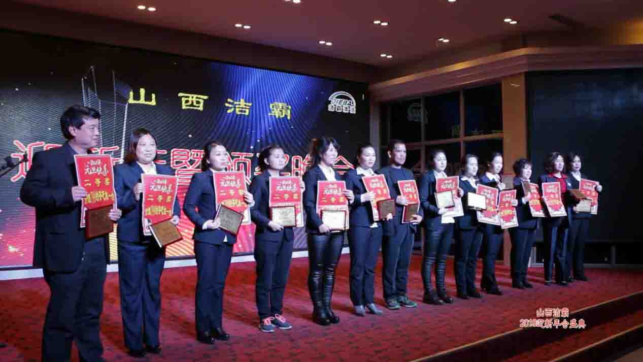 潔霸公司一直以來始終堅持“服務鑄就品牌,專業(yè)鑄就權威”的經(jīng)營理念,在這次的年會現(xiàn)場,公司同時也對員工進行了表彰。首先由公司副總經(jīng)理史志霞宣讀2017年表彰決定及獲獎名單,在這次表彰中公司設立了4個優(yōu)秀集體獎和37個優(yōu)秀個人獎,并對獲獎人員給予了精神上和物質上的鼓勵,隨著獎項的頒布不斷地掀起年會的高潮。