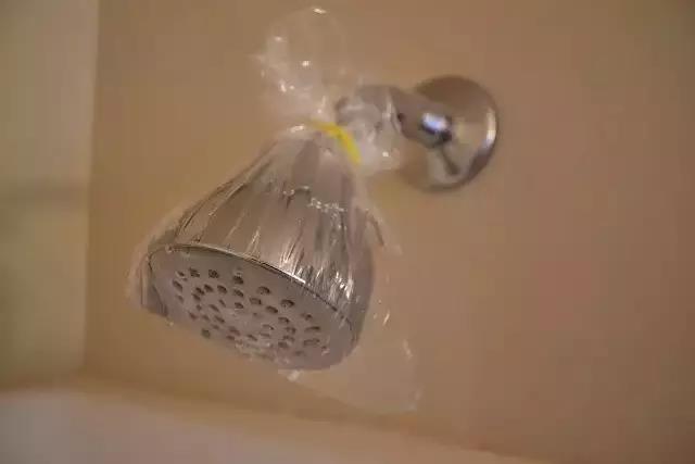 要清潔淋浴噴頭其實(shí)很簡單,拿一個塑料袋,倒入蒸餾水白醋,用橡皮筋固定在淋浴頭上,浸泡一小時后用干凈濕布擦干即可。
