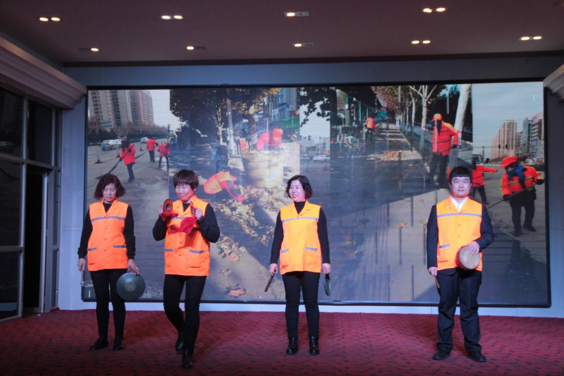 保潔部的三句半“夸夸我潔霸環(huán)衛(wèi)工”,向大家展示著有這么一群人,他們身穿橘色制服,穿梭于大街小巷,他們任勞任怨,起早摸黑,從事著城市最臟、最累的工作。他們就是我們的“城市美容師”——環(huán)衛(wèi)工人。