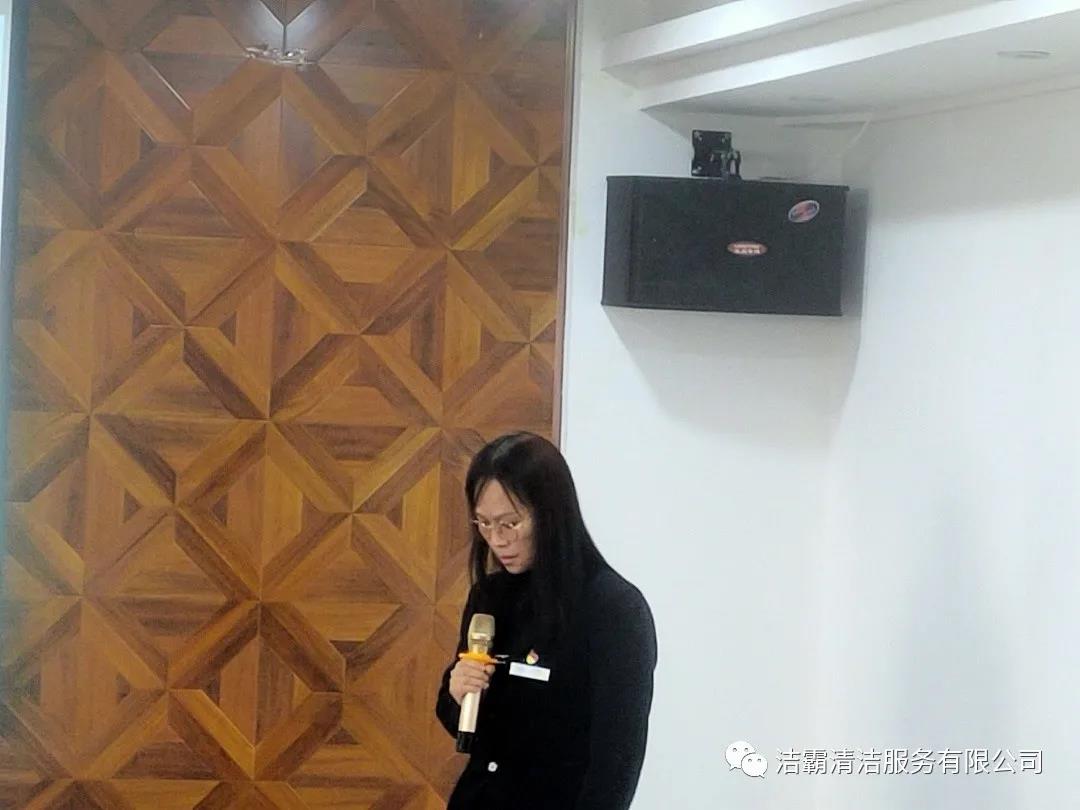 山西潔霸物業(yè)管理有限公司經(jīng)理李廣忠、會計張青霞、出納王頓花、晉城市合眾力勞務(wù)派遣有限公司經(jīng)理成濤、出納劉雨星、晉城市潔霸清潔服務(wù)股份有限公司工程部文員張陽楠、綜合辦公室車輛管理員呂衛(wèi)東、人力資源部文員呂利清、山西百潔物業(yè)服務(wù)有限公司出納王笑依次上臺作了述職匯報。