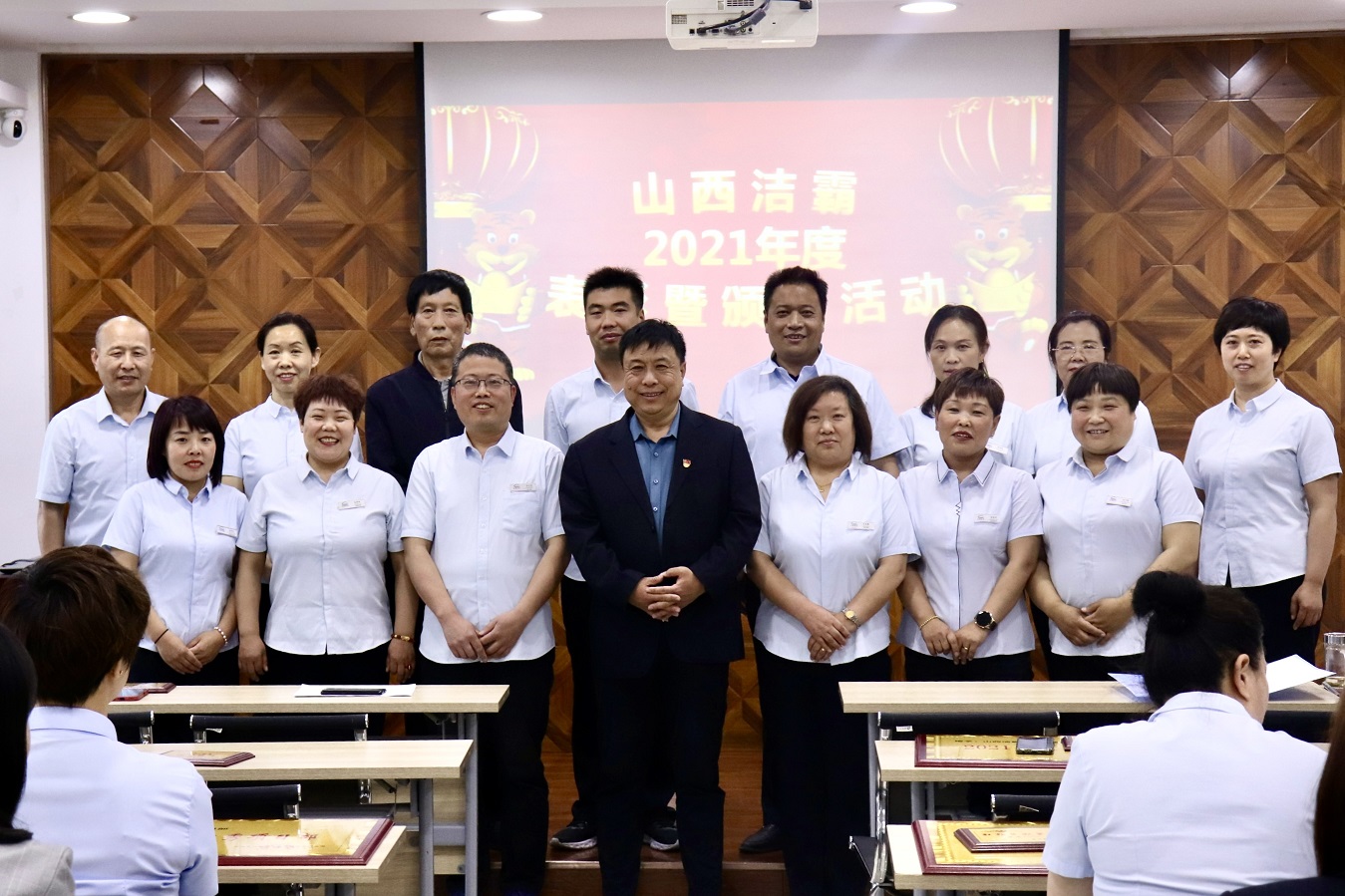 會(huì)上,副總經(jīng)理史志霞宣讀了《晉城市潔霸清潔服務(wù)有限公司關(guān)于表彰先進(jìn)集體和先進(jìn)個(gè)人的決定》,隨后為2021年度工作中成績突出的12家先進(jìn)集體和110名員工進(jìn)行頒獎(jiǎng)。