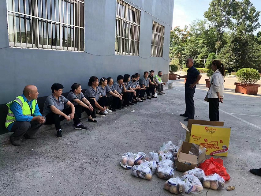 工會主席崔偉一行先后走訪萬達(dá)廣場、山西科技學(xué)院、晉城市金鳳凰廣場、鳳西廣場、白馬寺、青蓮寺、陽城北留潔霸洗業(yè)等地,對戶外高溫下作業(yè)的高空清洗員工、物業(yè)保潔員工、環(huán)衛(wèi)員工、園林綠化員工及洗衣廠員工等一線勞動者進(jìn)行慰問。崔主席充分肯定了高溫下堅(jiān)持奮戰(zhàn)在一線員工的敬業(yè)精神,感謝他們?yōu)闈嵃浴皯?zhàn)高溫、斗酷暑”付出的辛勤勞動,并將面包、桃子、白糖等慰問品送到員工手中,讓高溫下堅(jiān)守在一線的員工感受到來自潔霸大家庭的關(guān)愛。