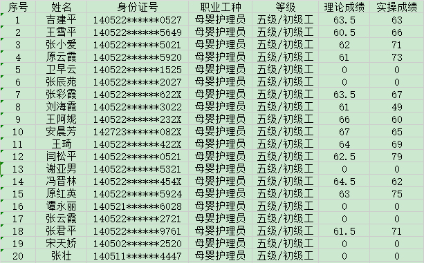 晉城市潔霸清潔服務(wù)股份有限公司職業(yè)技能等級(jí)認(rèn)定中心現(xiàn)將2024年10月14日認(rèn)定人員成績公示如下: