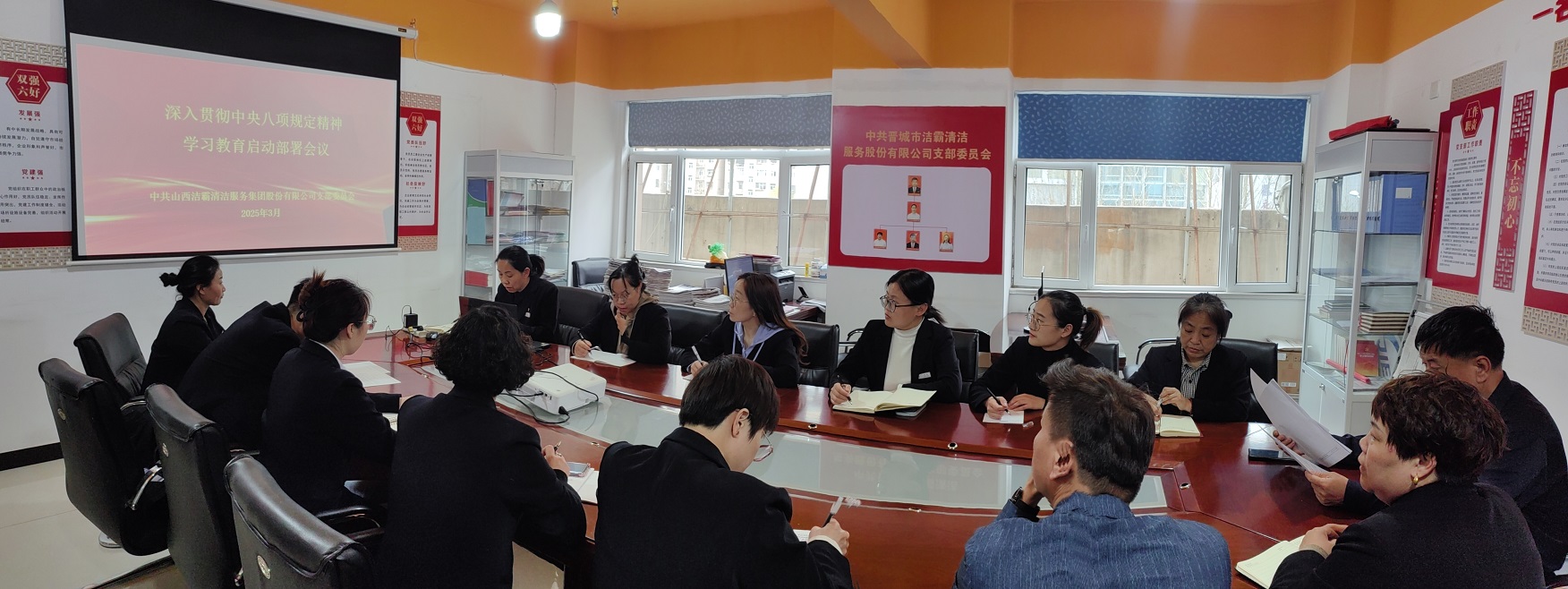 近日,山西潔霸清潔服務(wù)集團(tuán)股份有限公司黨支部召開專題會(huì)議,對公司開展深入貫徹中央八項(xiàng)規(guī)定精神學(xué)習(xí)教育進(jìn)行部署。支部書記程晉軍主持會(huì)議并講話。